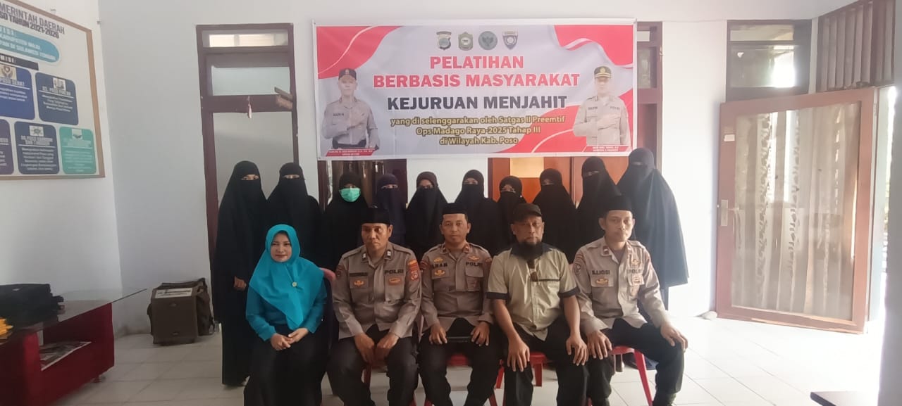 Palu Ngataku – Upaya deradikalisasi berbasis pendekatan kemanusiaan terus digencarkan Satgas II Preemtif Operasi Madago Raya. Salah satunya melalui pembukaan Pelatihan Berbasis Masyarakat Kejuruan Menjahit Gelombang Kedua yang digelar di Kantor Dinas Tenaga Kerja dan Transmigrasi Kabupaten Poso, Kamis (10/7/2025).