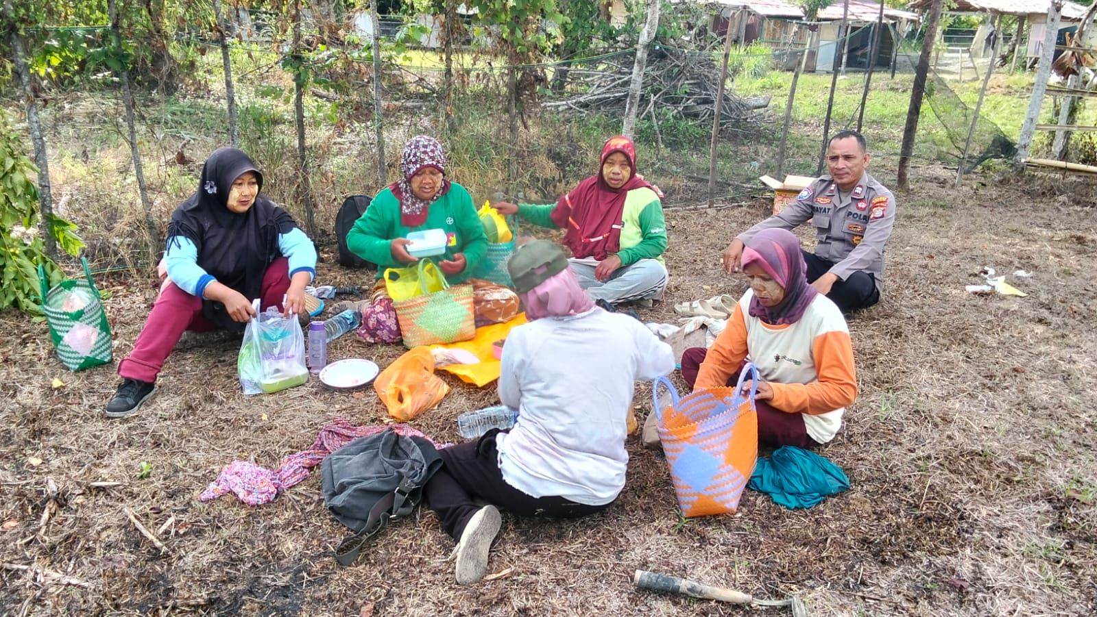 Aiptu Rahmat Hidayat menyampaikan pesan-pesan kamtibmas kepada para ibu-ibu pekerja harian. Ia mengajak masyarakat untuk terus menjalin kerja sama dengan pihak kepolisian demi menciptakan situasi yang aman dan nyaman di wilayah Poso Pesisir Utara.