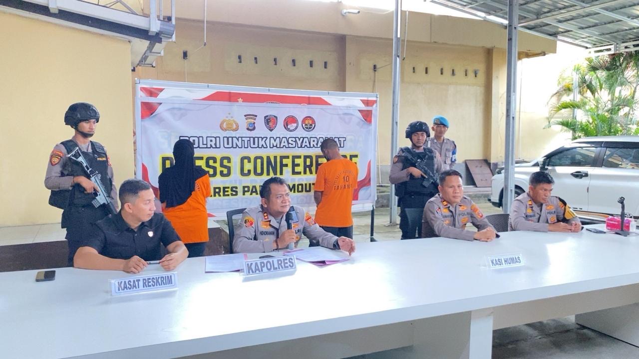 Penangkapan dilakukan jajaran Polres Parigi Moutong pada Rabu (10/9/2025) sekitar pukul 15.00 WITA. Dua pelaku berinisial NF (56) dan HA (31) diamankan bersama sejumlah barang bukti, termasuk 1 unit excavator oranye merek Hitachi Zaxis 110, 7 gram butiran emas, 1 unit mesin alkon Honda 160X, selang spiral, serta 2 lembar karpet penyaring emas.