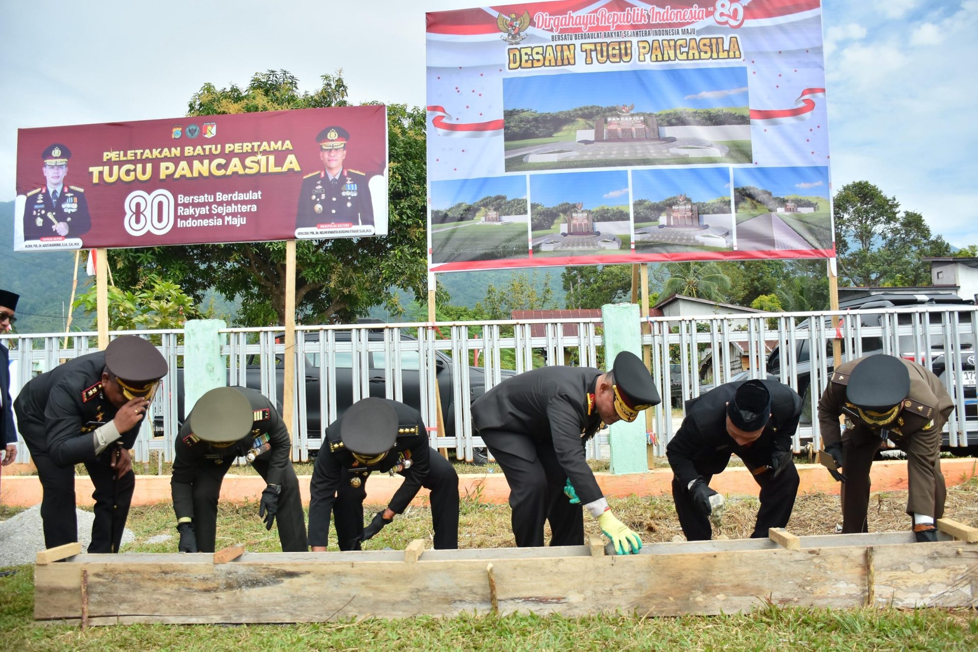 Dalam kegiatan tersebut, Kapolda Sulteng didampingi Kaops Madago Raya Kombes Pol Heni Agus Sunandar, sejumlah Pejabat Utama (PJU) Polda Sulteng serta jajaran Forkopimda Kabupaten Poso. Peletakan batu pertama ini menjadi simbol dimulainya pembangunan tugu pancasila sebagai monumen kebangsaan di wilayah Poso.